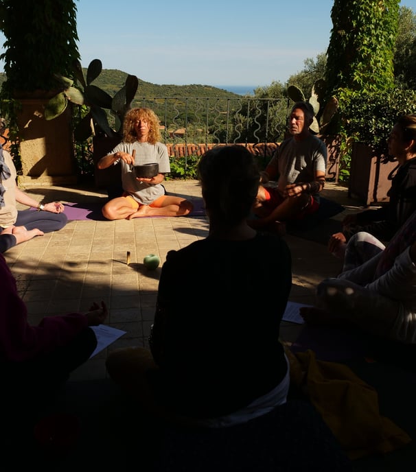 Selon le planning : marche consciente ; bain sonore ; méditation ; cueillette sauvage ; cours d'alimentation consciente ; atelier cuisine ayurvédique ; visite des villages corses ; danse de connexion...
